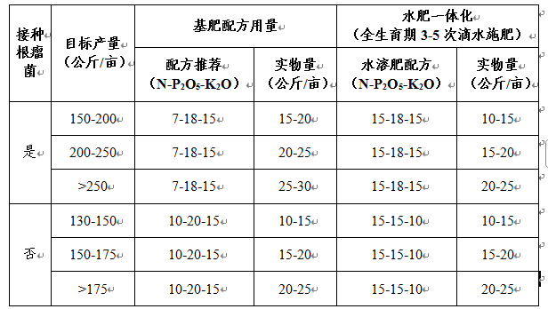 (一)测土配方、以产定量。结合不同区域土壤肥力与目标产量,科学核定氮、磷、钾及中微量元素施用量,积极推广测土配方施肥技术,做到科学施肥,提高肥料利用效率。