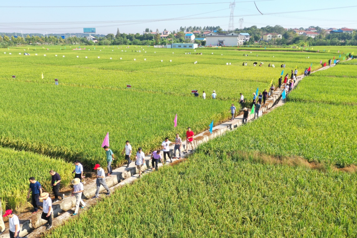 在湖北荃银高科种业等企业品种展区,不同成熟期的品种分类后被统一播种、统一移栽、个性管理,真实呈现出各品种的典型性状。展示区布局合理、品种标示牌醒目,吸引了大量水稻专家、经销商、种粮大户到展区交流和观摩。