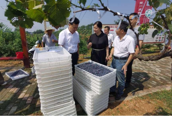 在黄梅县湖北紫玉蓝莓公司,调研组一行仔细查看蓝莓生长环境,与蓝莓基地负责人沟通交流,详细了解了蓝莓种植规模、灌溉水源、病虫防治、品质产量、销售渠道以及带动周边农户就业等情况。蓝莓基地负责人对省农业农村厅帮助紫玉蓝莓公司牵线搭桥武汉美团优选,打通销售渠道表示感谢。调研组表示,帮助企业解决销售困难是农业农村部门义不容辞的义务,企业遇到困难要及时要向农业农村部门反馈,农业农村部门将力所能及帮助协调解决。调研组对公司的发展给予了肯定,勉励他们抢抓发展机遇,通过标准引领、质量提升、品牌培育、示范创建,带动周边村民致富增收,积极推动农旅融合,促进乡村振兴。
