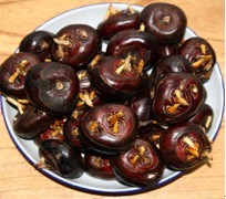 荸荠球茎装入0.02mm后塑料袋,封口后装箱,堆码或上架冷库中,保持库温1~5℃,空气相对湿度95%~100%。