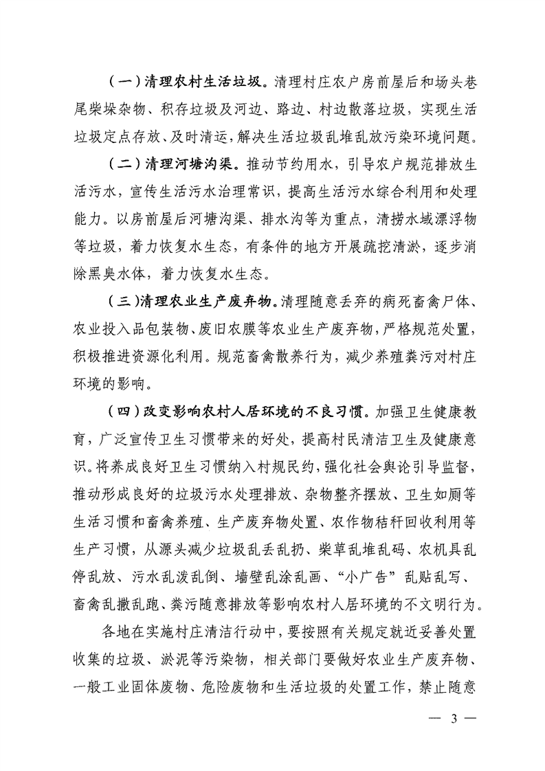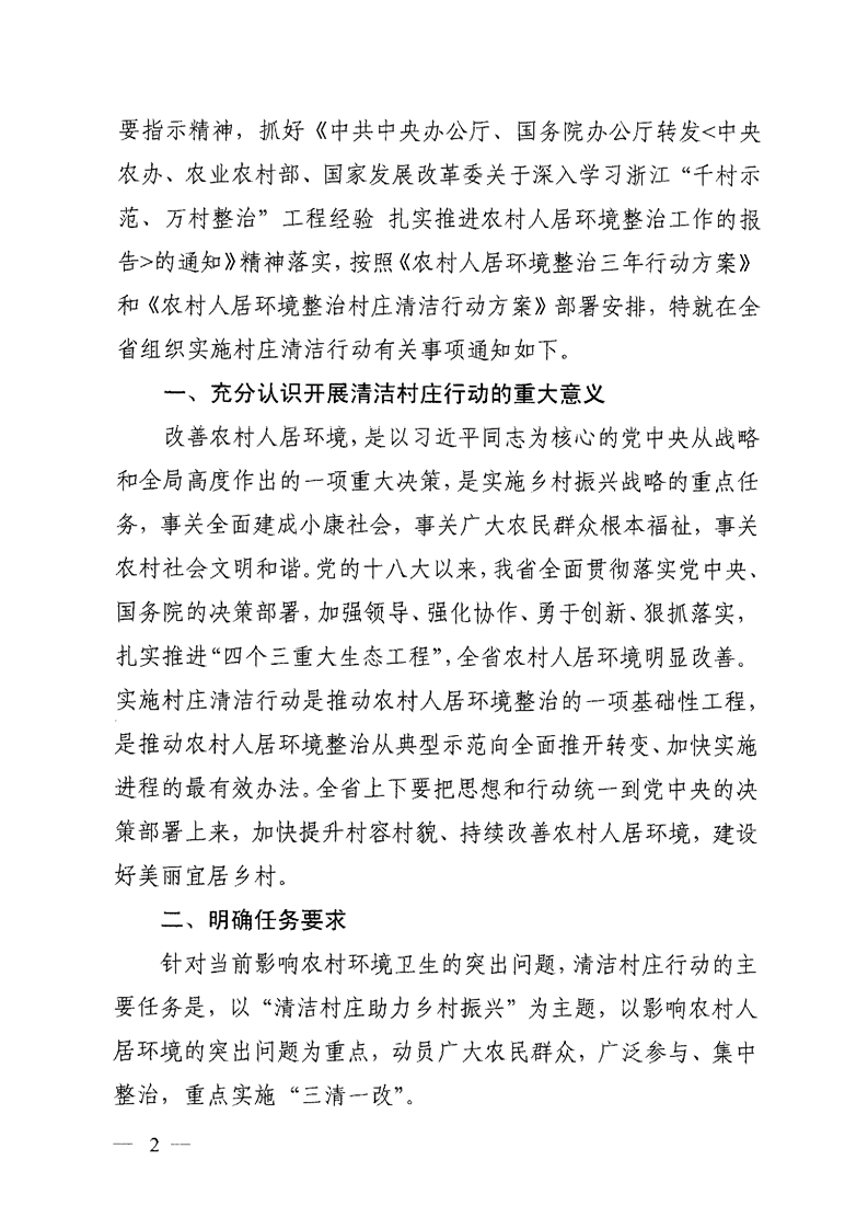 关于迅速组织开展农村人居环境整治村庄清洁行动的通知