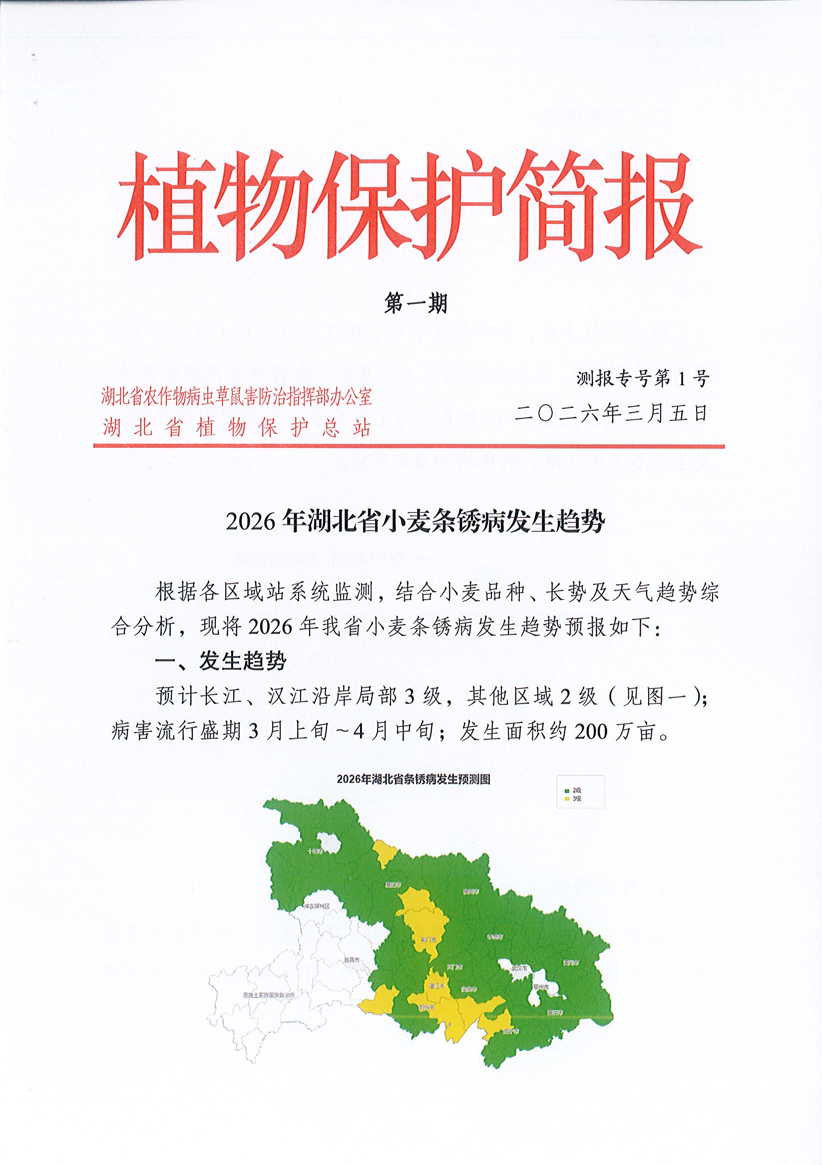 2026年湖北省小麦条锈病发生趋势