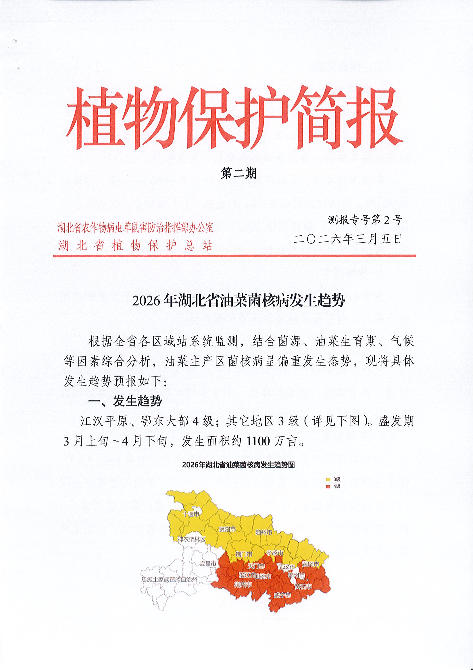 2026年湖北省油菜菌核病发生趋势