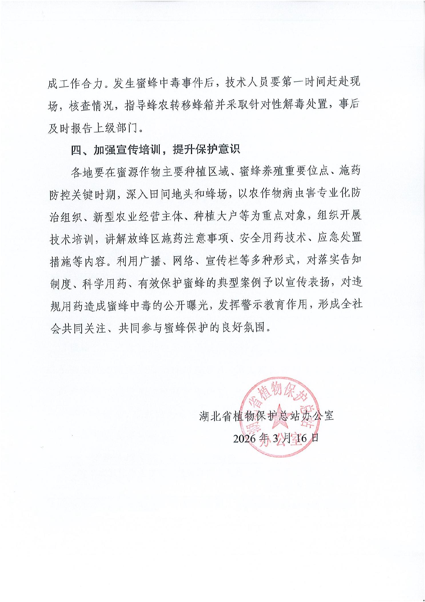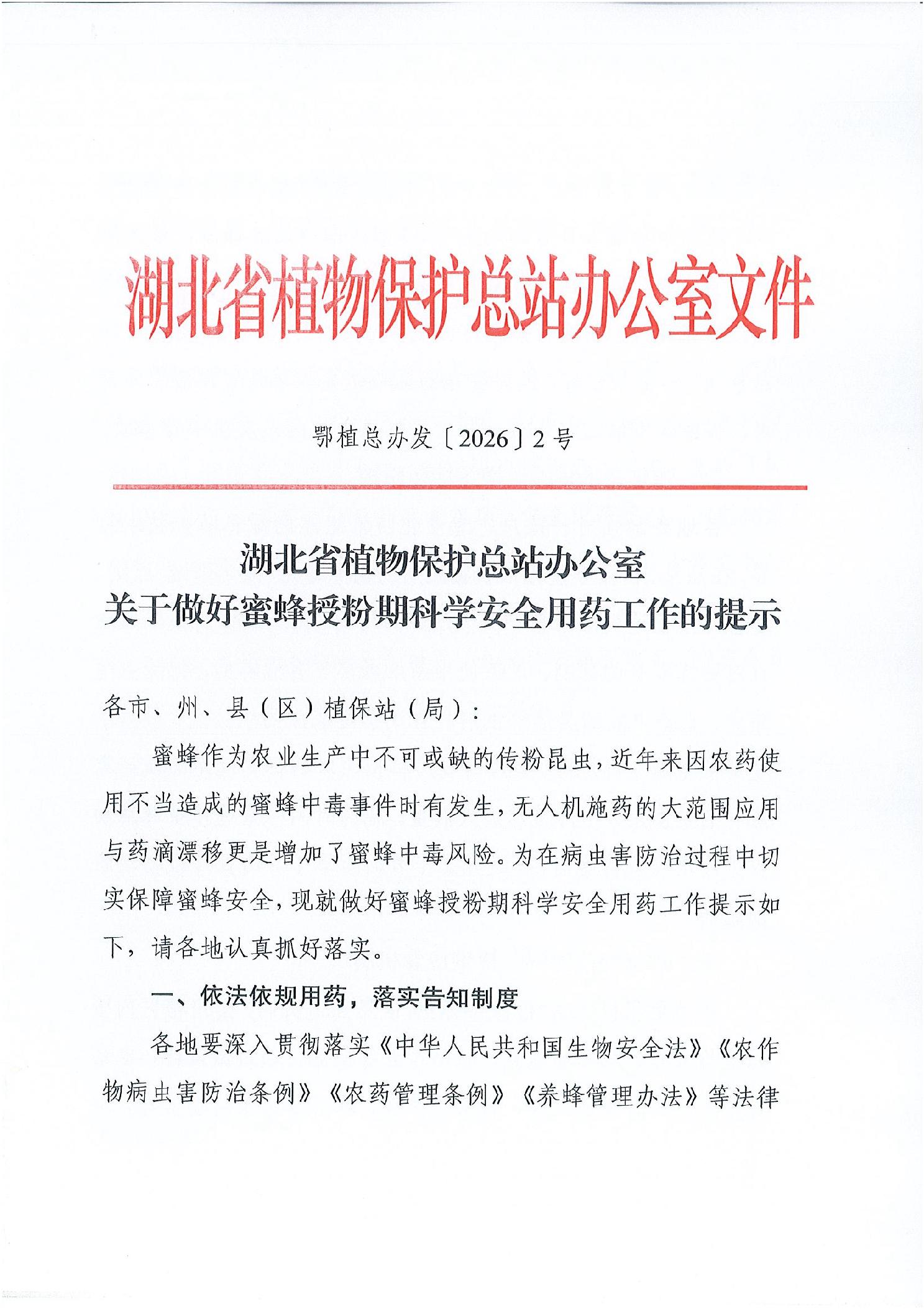 湖北省植物保护总站办公室关于做好蜜蜂授粉期科学安全用药工作的提示
