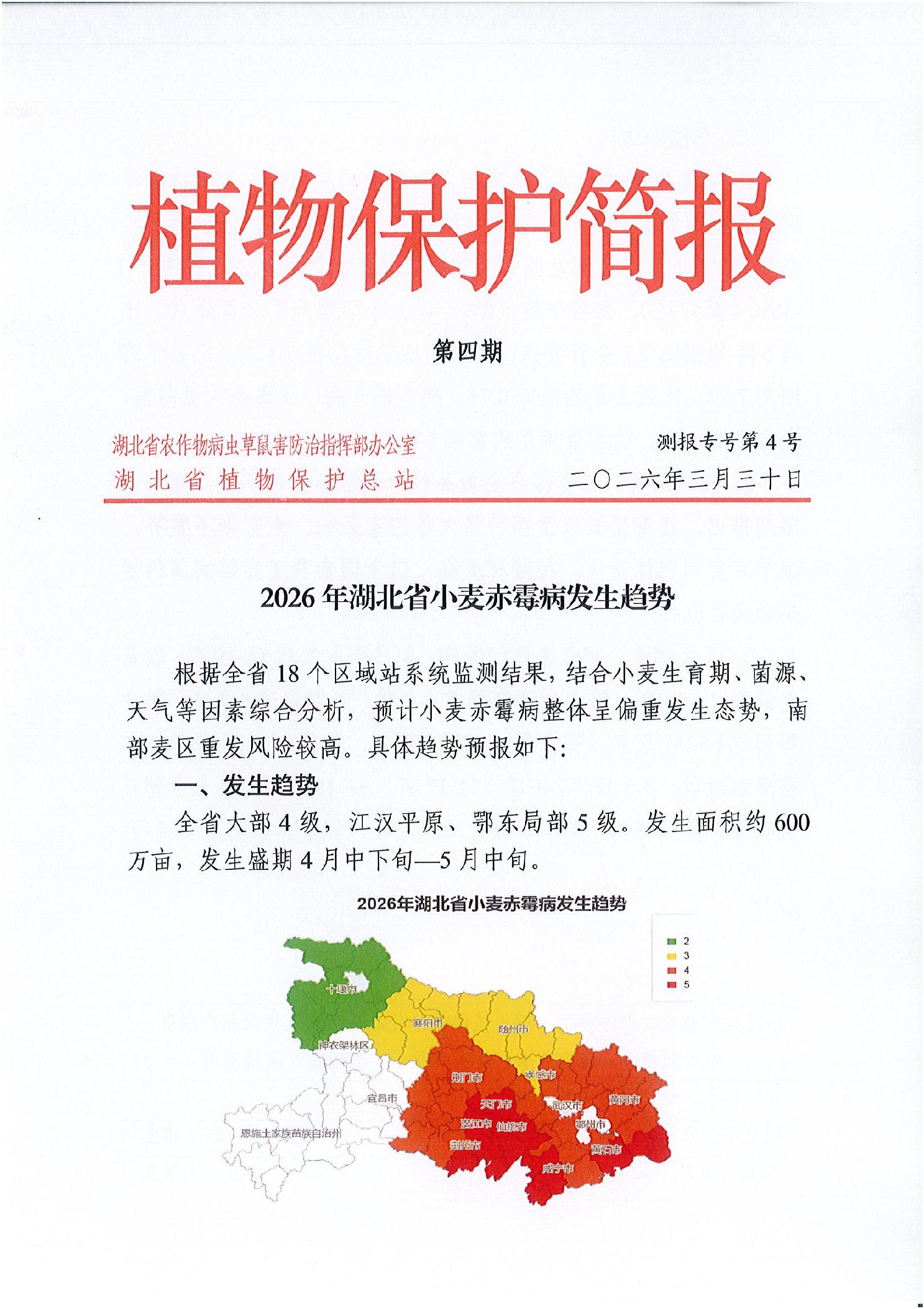 2026年湖北省小麦赤霉病发生趋势