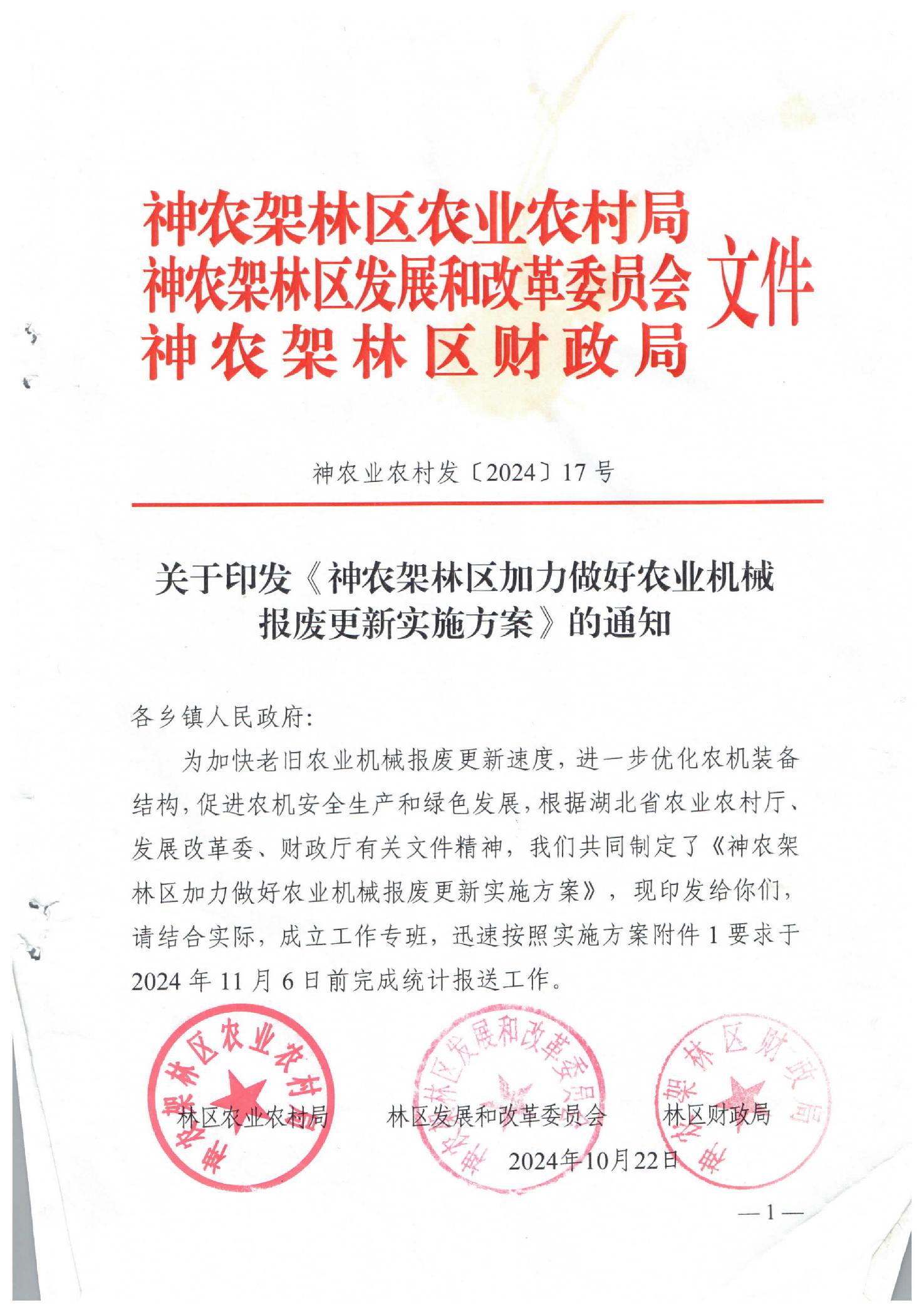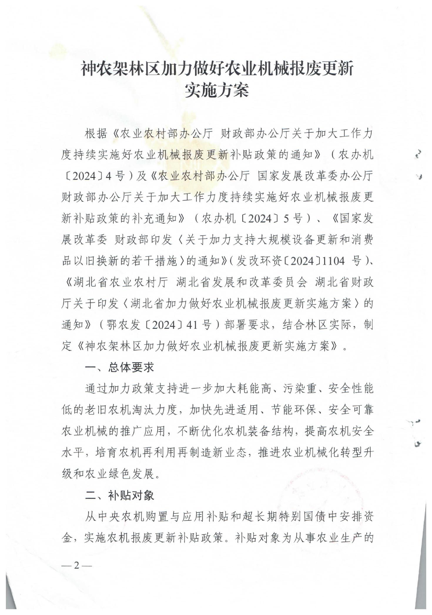 神农架林区2024年农机报废补贴方案(神农业农村发【2024】17号)