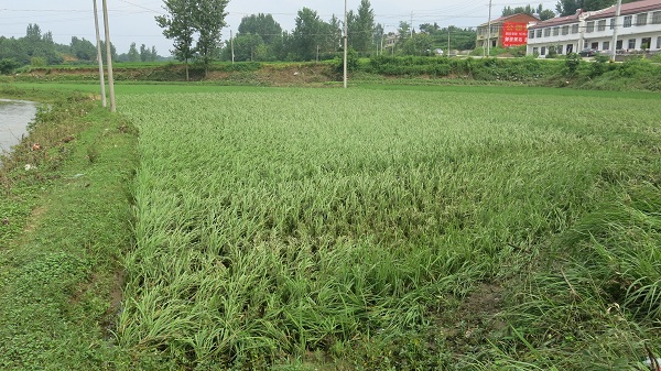 随县柳林镇古城畈稻香米业生产基地中稻受灾情况
