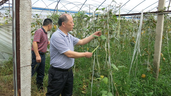 刘局长一行在随县琼圃现代农业有限公司查看蔬菜受灾情况