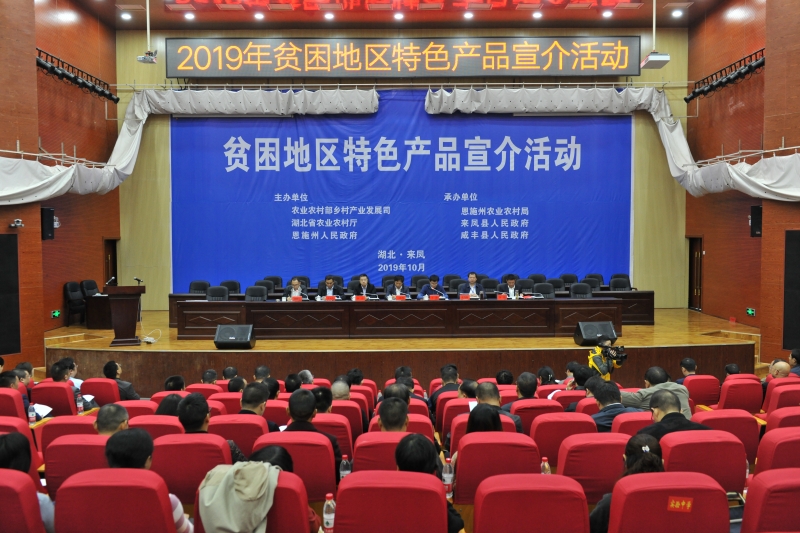 10月23—25日,“2019年贫困地区特色产品宣介活动(湖北)”在恩施州来凤县举行。此次活动由农业农村部乡村产业发展司、湖北省农业农村厅、恩施州人民政府联合主办。农业农村部乡村产业发展司副司长刁新育、厅二级巡视员丁锋出席并致辞,来自北京、江苏、浙江、江西、湖北等省(市)的94家企业、采购商、电商代表和有关机构专家等参加活动。