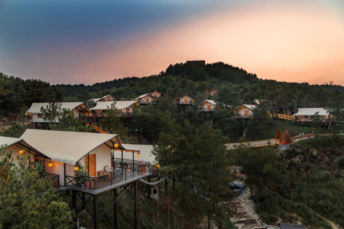 1.松鼠王国森林酒店。位于木兰草原梦栖谷篝火广场旁边,民宿融合了亲子、自然、野奢三大元素,以松鼠为特色、亲子为主题建成了20间私密独立野奢帐篷,每栋房都配备有独立卫浴和360°观景大露台,配套山顶无边泳池和酒馆,在感受野趣之余还能体验氛围感拉满的泳池度假。
