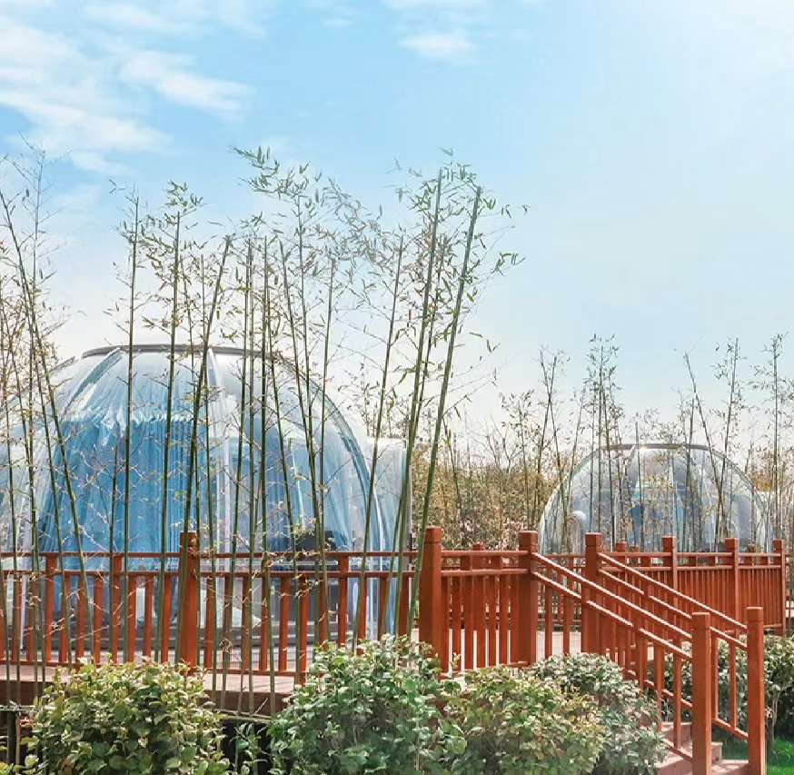 3.木兰桃源。位于王家河街岗上熊村,住宿选择包括森林木屋、星空泡泡屋等,是一处以特色农业种植为基础,以山、林、谷、溪、村、居为载体的“生态田园”,园区内有600亩桃林,各式特色民宿,垂钓、烧烤、土灶、酒吧应有尽有,还有璀璨灯光歌舞表演点亮夜空。