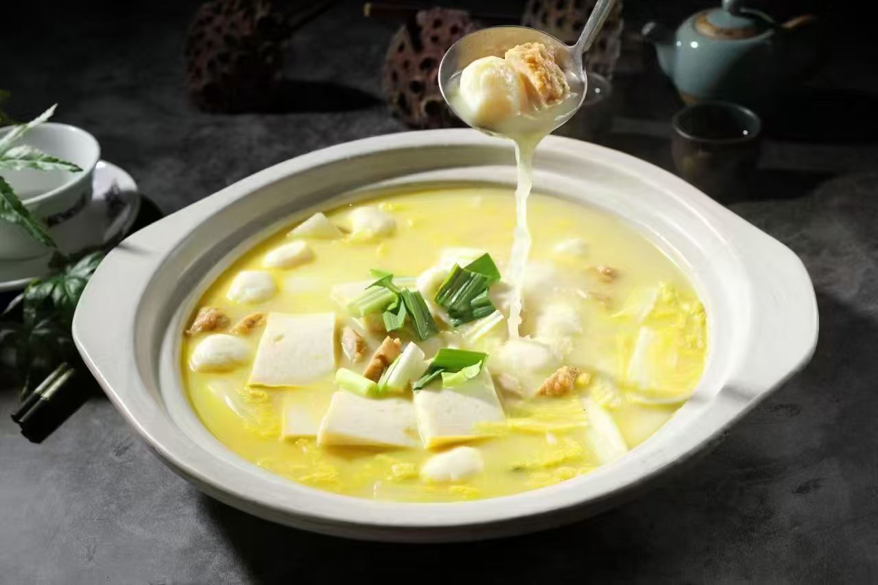 1.黄陂三鲜。由鱼丸、肉丸、肉糕三样食材组合而成,既可单独成菜,亦可三样合烹。成菜后“肉含鱼香,鱼融肉味”,独具风味,素有“一菜三鲜”之美誉,在本地宴席中占有重要地位,亦是各家农家乐的招牌特色菜。