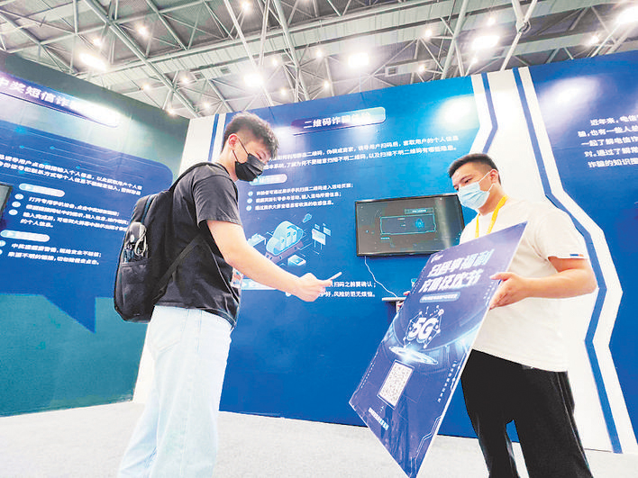 市民在网络安全科普互动区体验了解为何不要随意扫描不明二维码以及扫描不明二维码有哪些隐患。记者 张正朋 摄