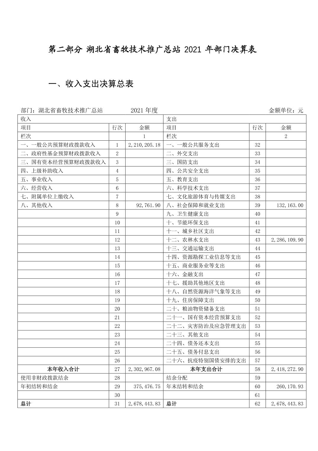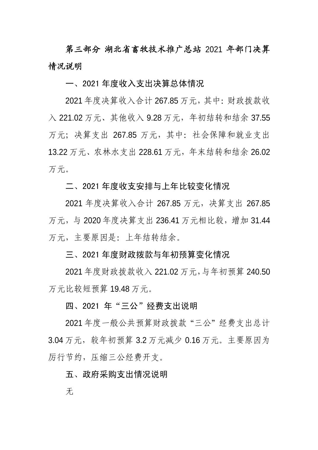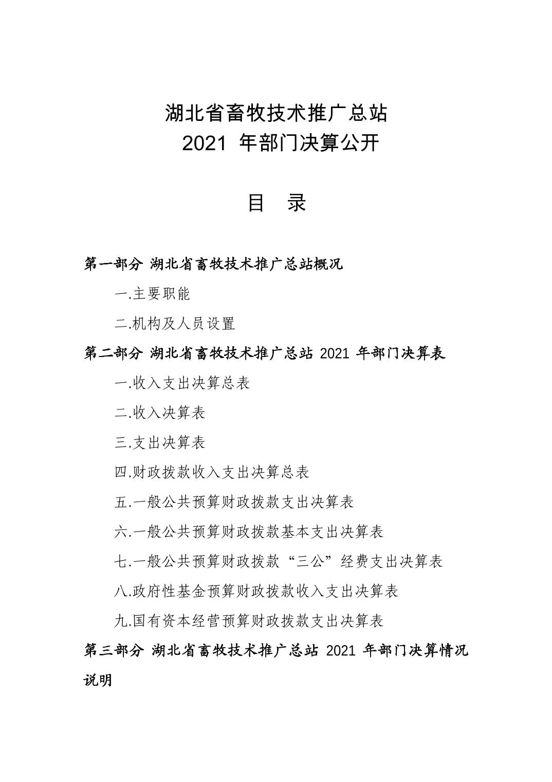 湖北省畜牧技术推广总站 2021 年部门决算公开