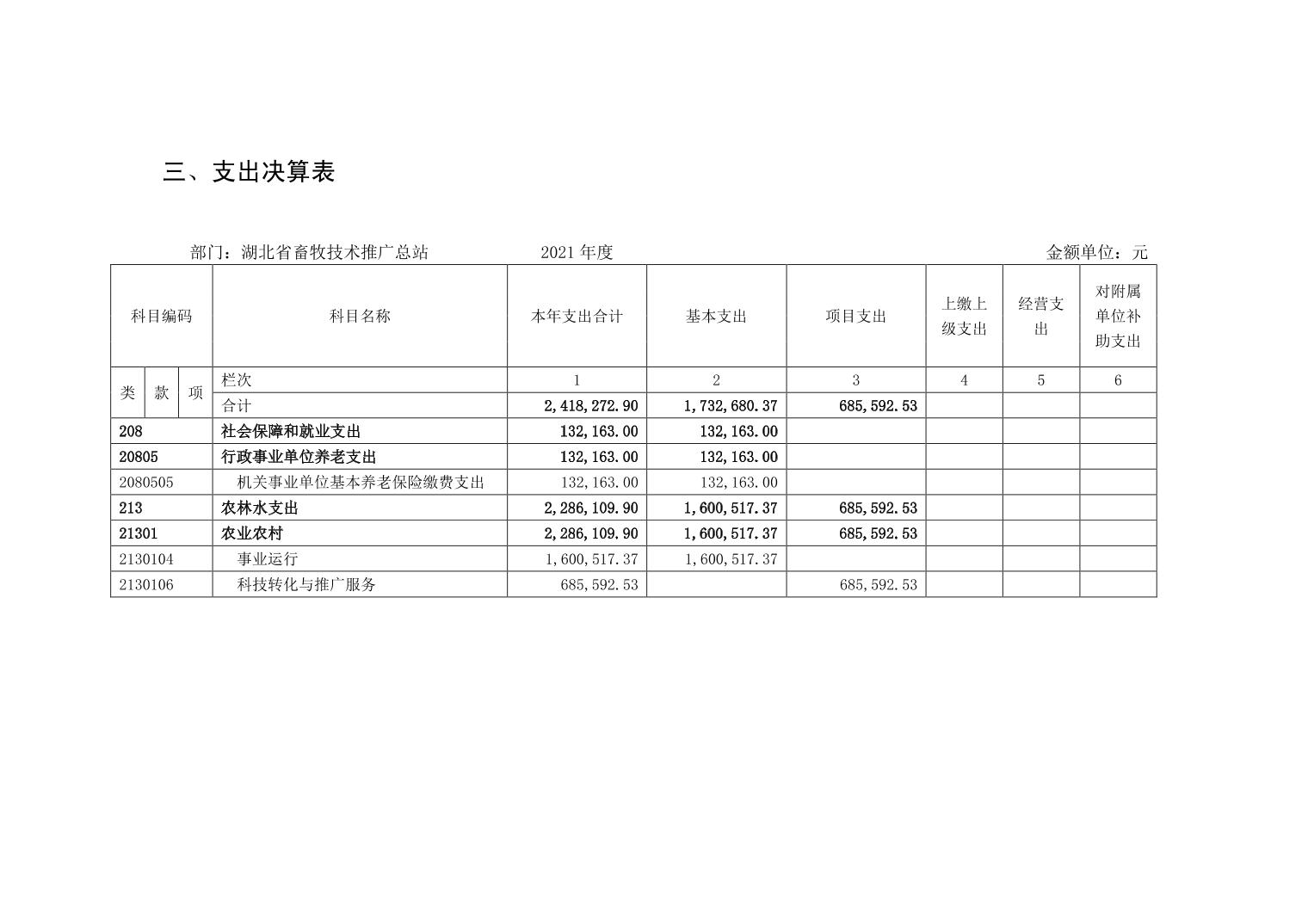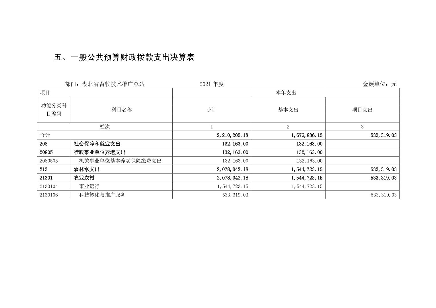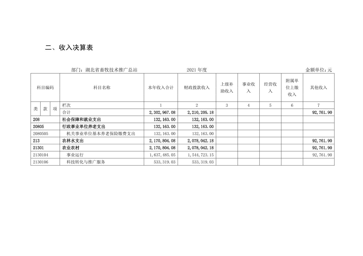 湖北省畜牧技术推广总站 2021 年部门决算公开
