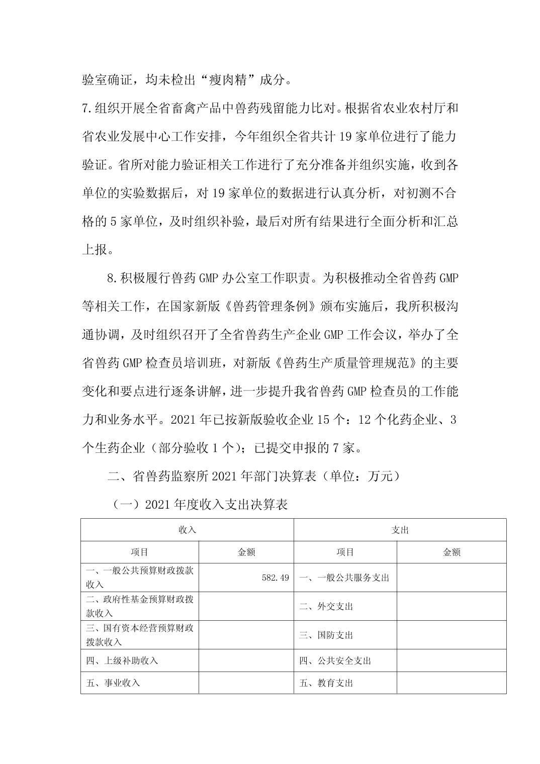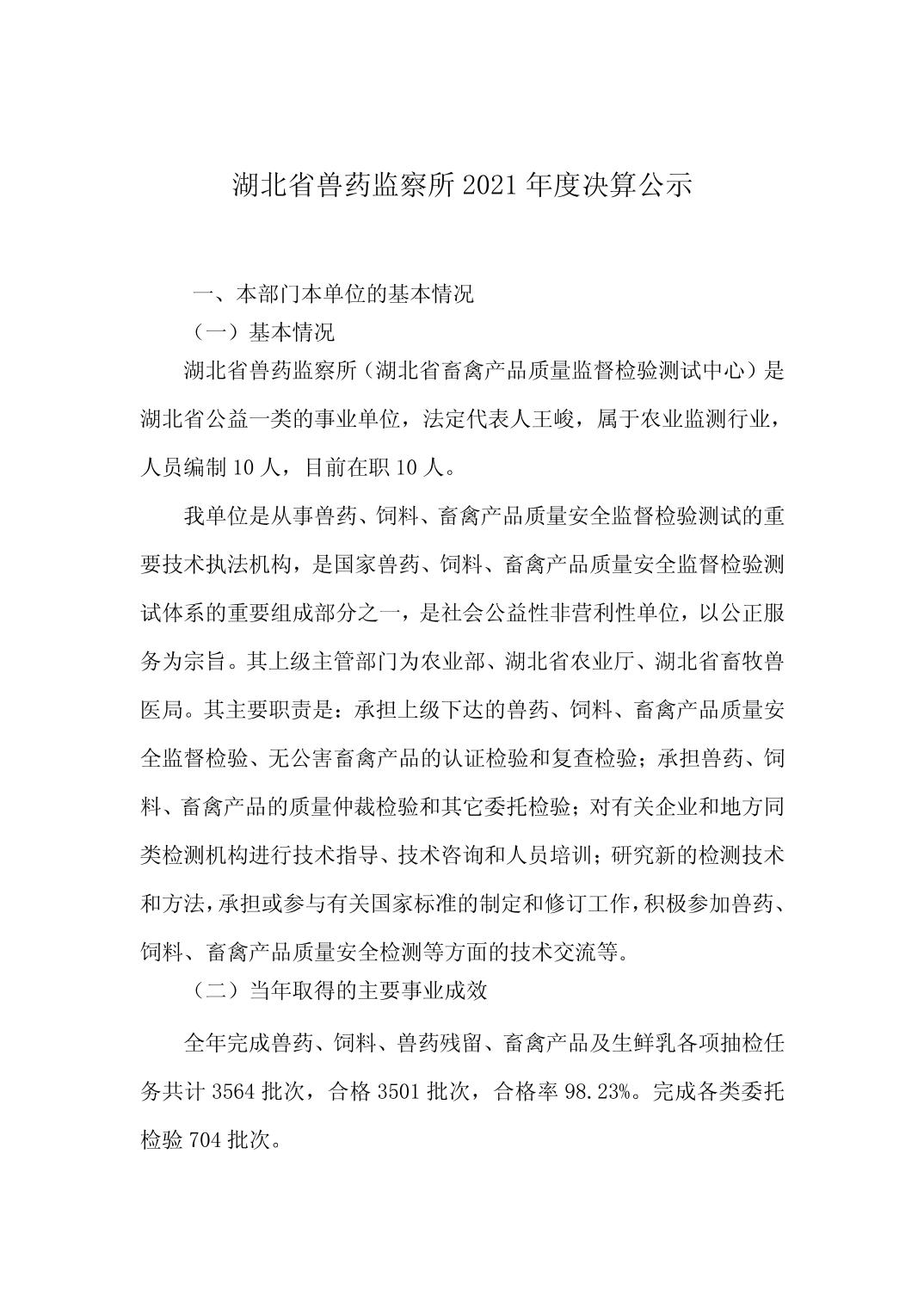 湖北省兽药监察所2021 年度决算公示