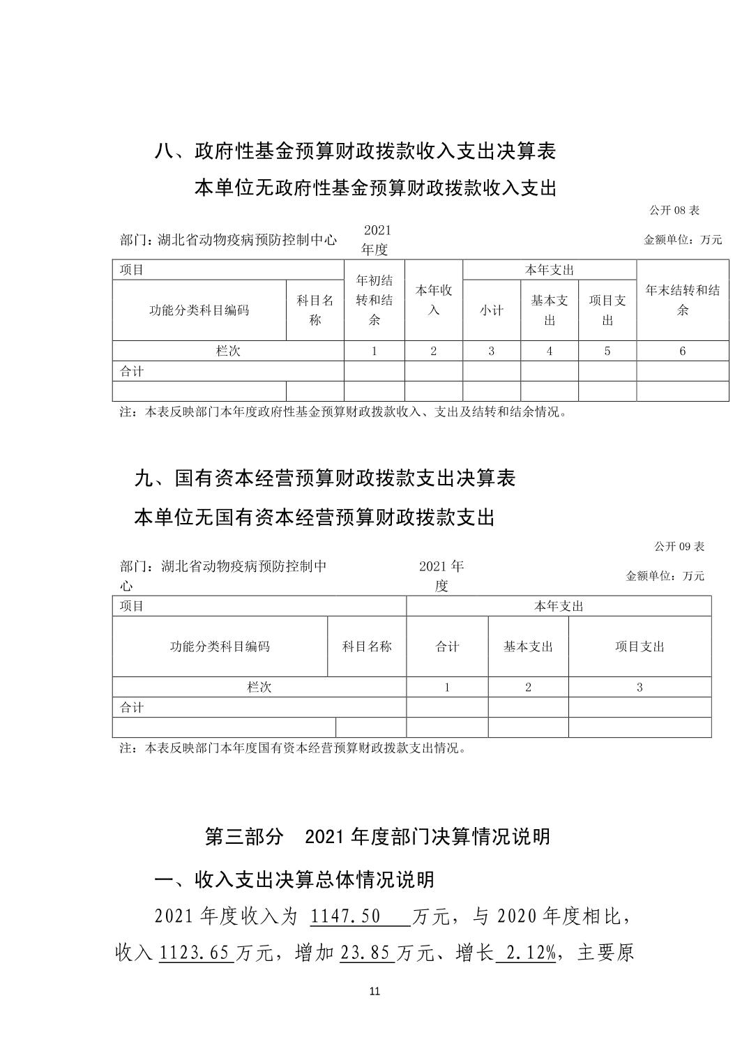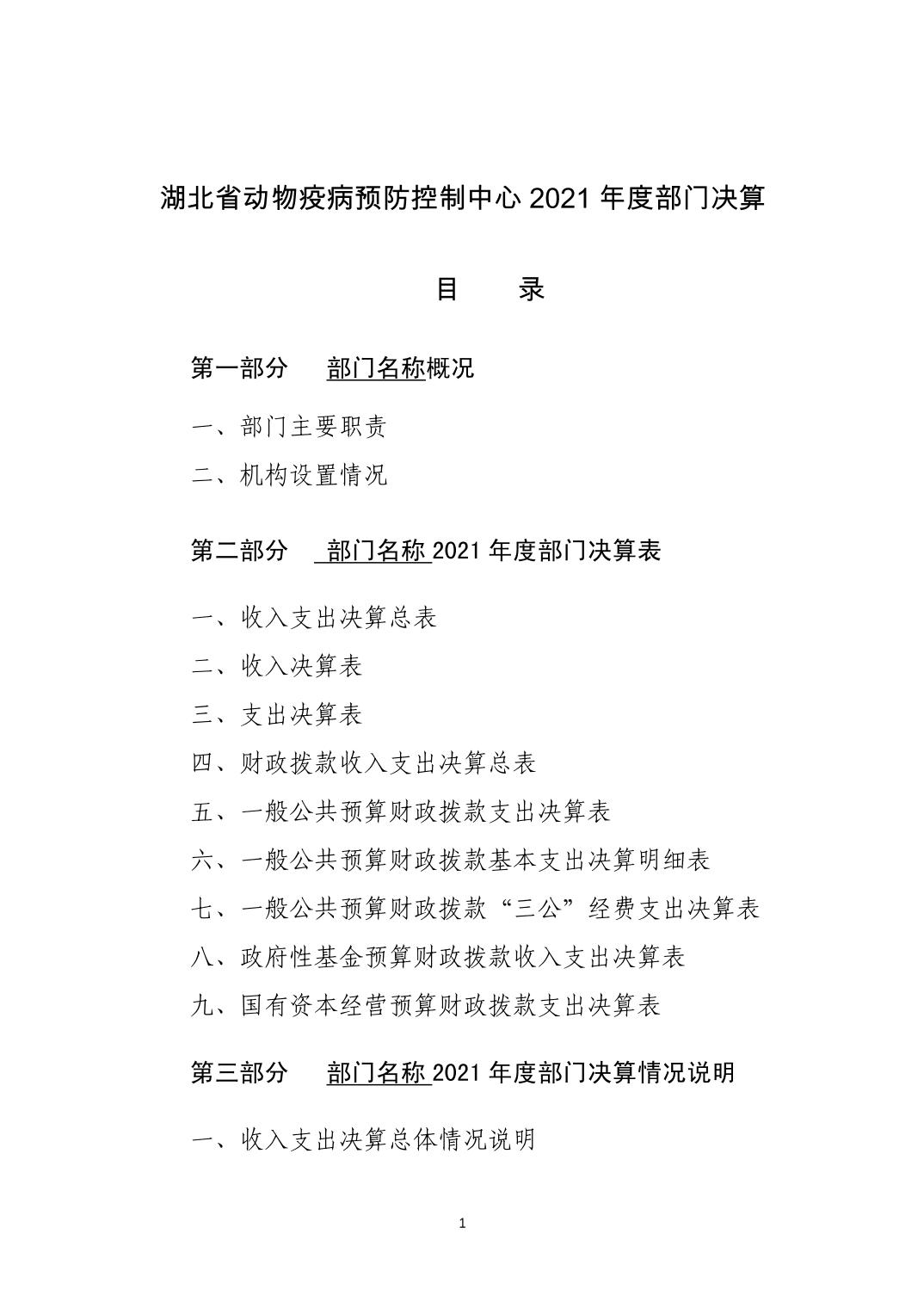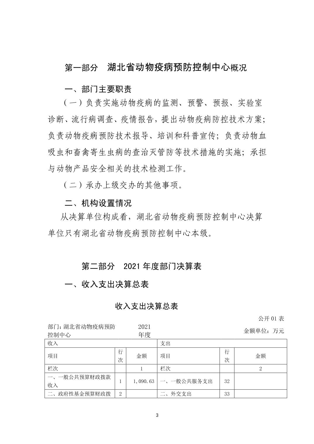 湖北省动物疫病预防控制中心2021年部门决算公开