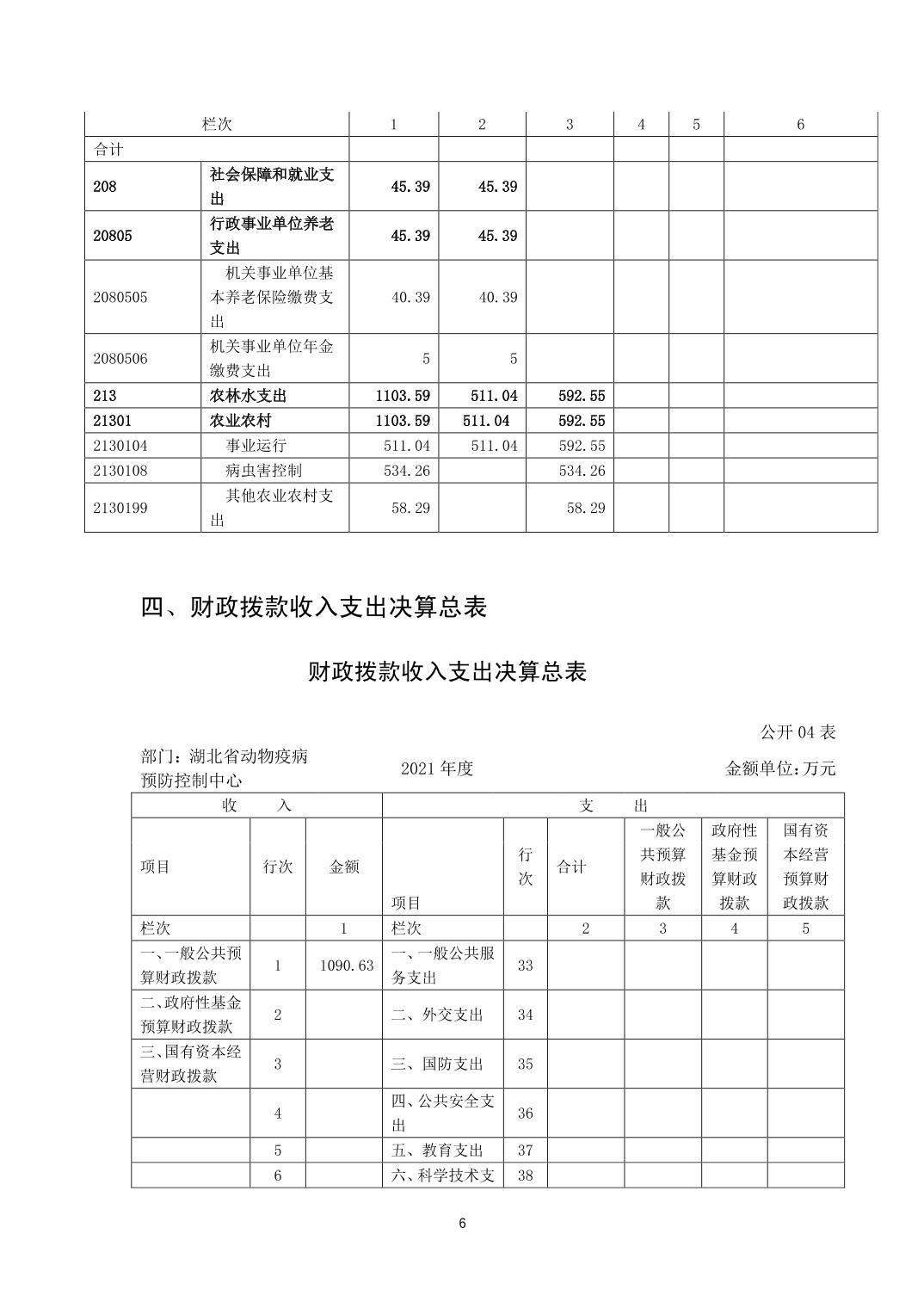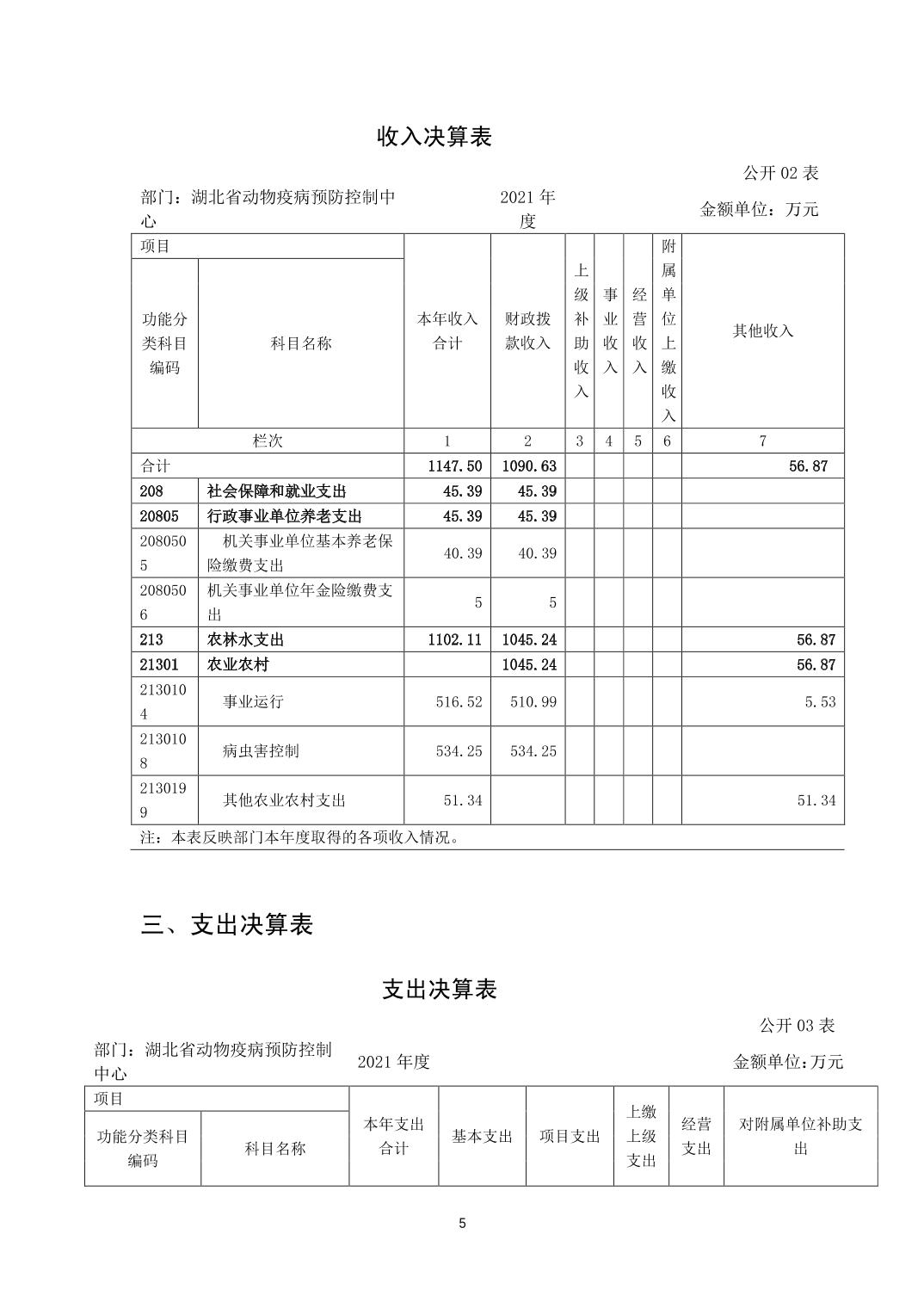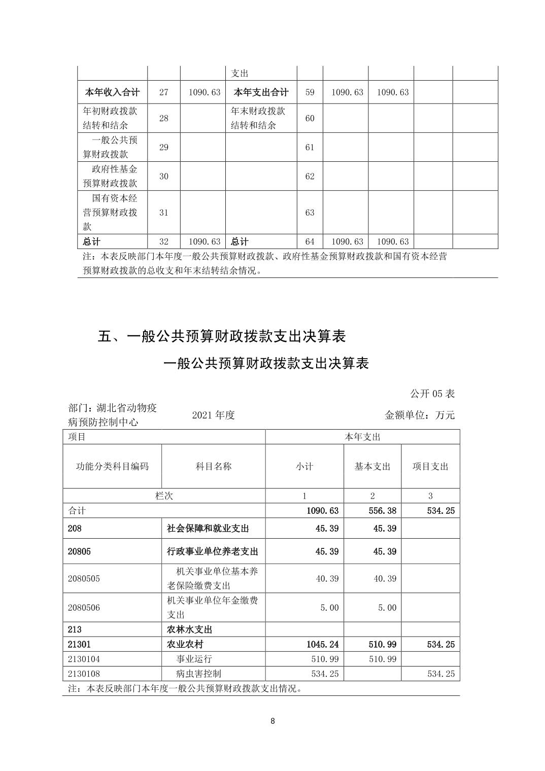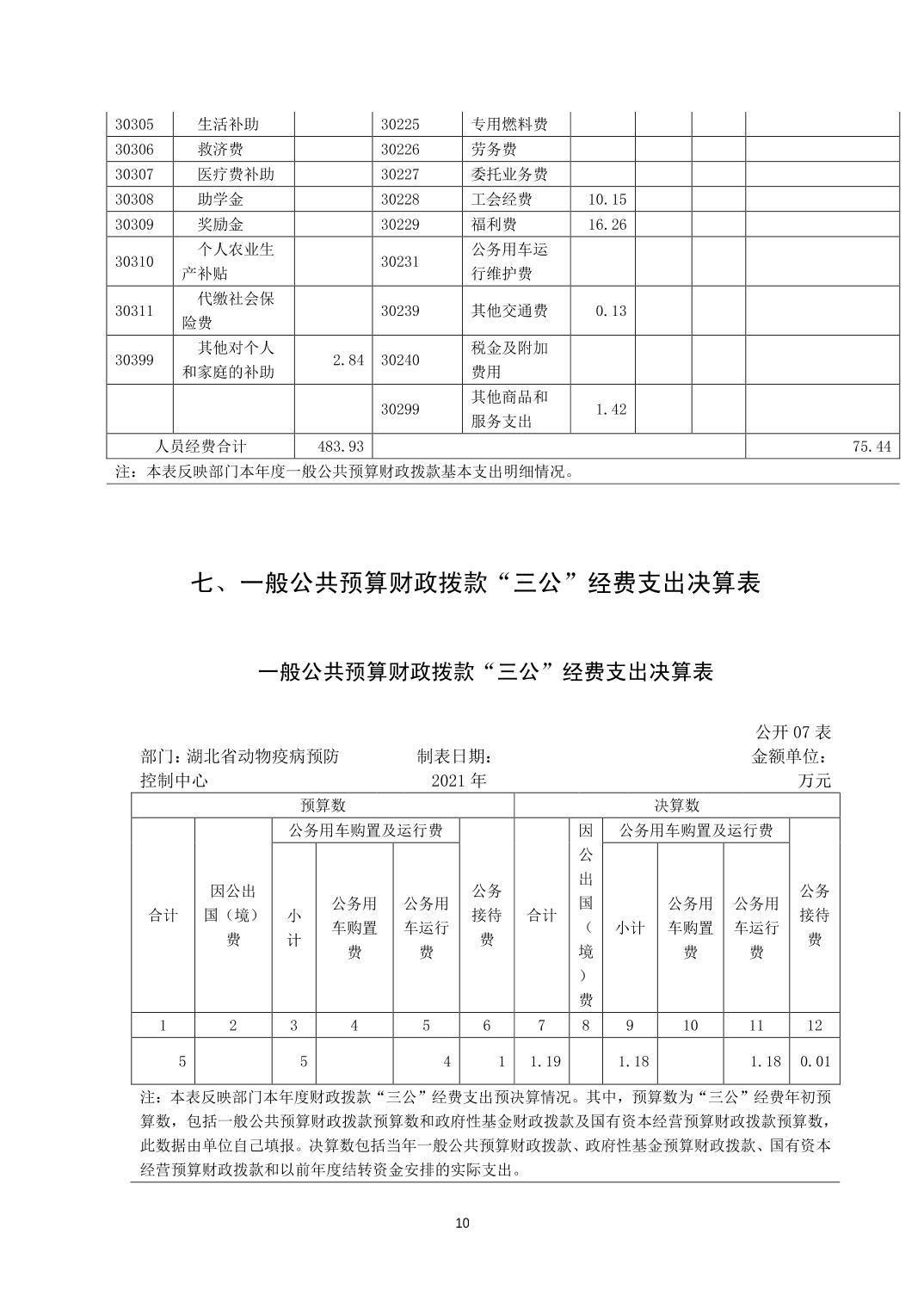 湖北省动物疫病预防控制中心2021年部门决算公开