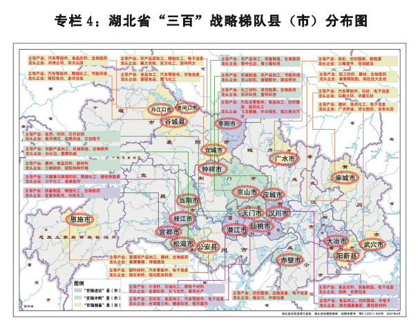 支持“百强进位”。着重在重大基础设施、重大生产力布局、奖励扶持等方面,对百强县(市)倾斜,支持推动大冶市、宜都市、仙桃市挺进全国县域经济五十强,尽早实现五十强县零的突破;支持潜江市、枣阳市、汉川市、枝江市在“全国百强县”中争先进位。重点支持宜都市、仙桃市、潜江市加快推进国家县城新型城镇化建设示范工作,鼓励大冶、汉川等地加快城区品质提升,增强城市功能。高质量推进大冶市、仙桃市、潜江市、枣阳市、汉川市国家级经开区、高新区建设,加快发展高端装备制造、汽车零部件及机械、光电子信息新材料、农产品精深加工、绿色家居等新兴产业,突破性发展现代服务业,促进“百强”县(市)城市和产业能级双提升。