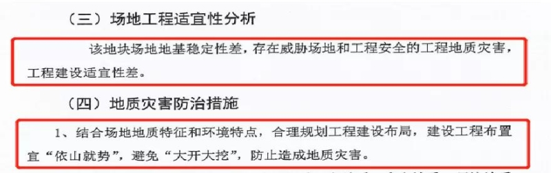 图1 湖北省地质勘察基础工程公司于2017年2月出具《长阳丹水大房坪地块地质调查报告》,显示花香水岸项目区域场地工程建设适应性差,建设工程布置应“依山就势”,避免“大开大挖”,防止造成地质灾害