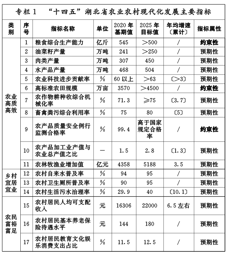 【决策草案】湖北省推进农业农村现代化“十四五”规划的决策草案
