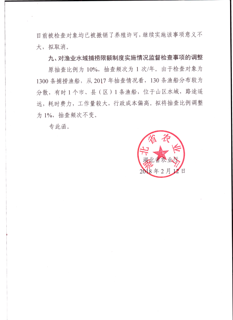 2.省农业厅关于调整省级农业随机抽查事项抽查对象以及比例和频次的函(鄂农函〔2018〕42号)