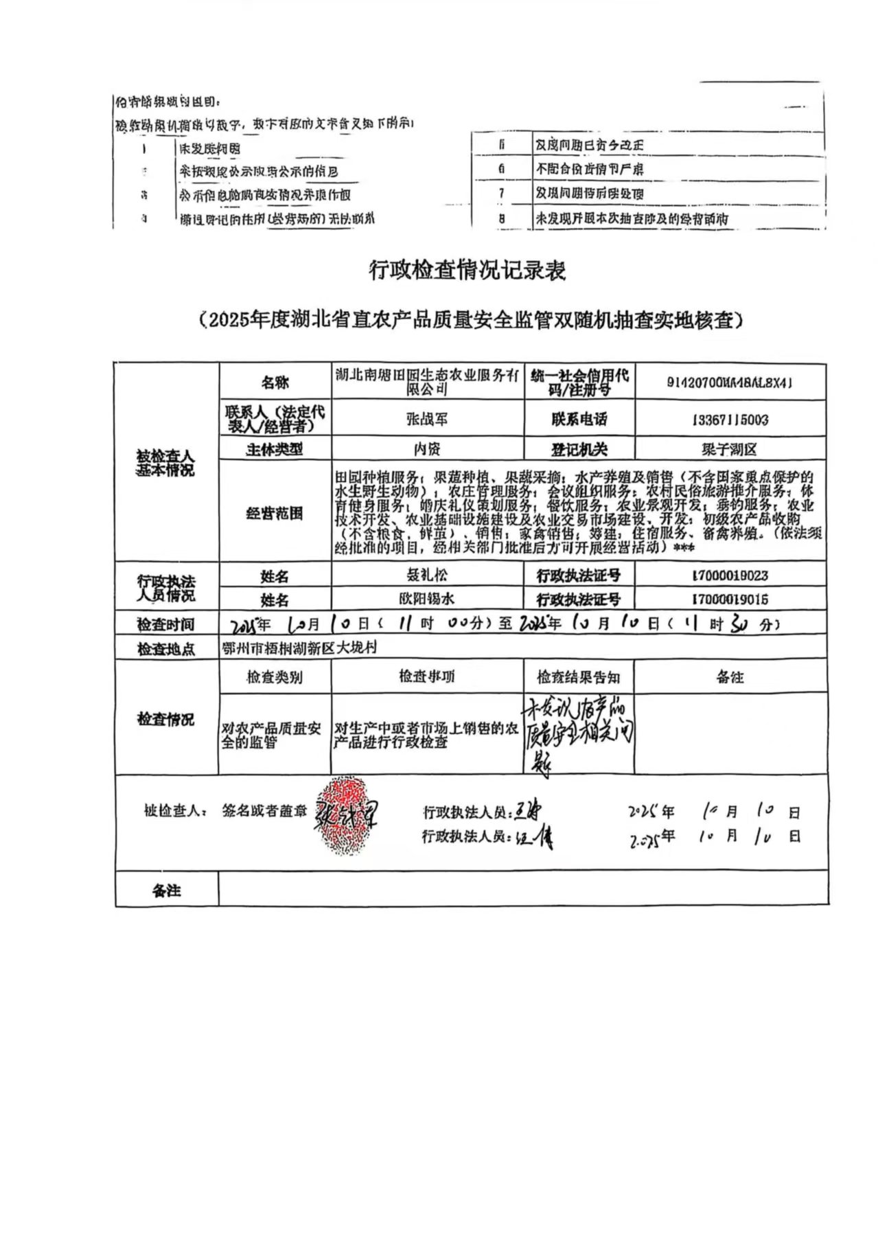 2025年度“双随机、一公开”抽查实地核查记录(转基因、农产品安全、农药)