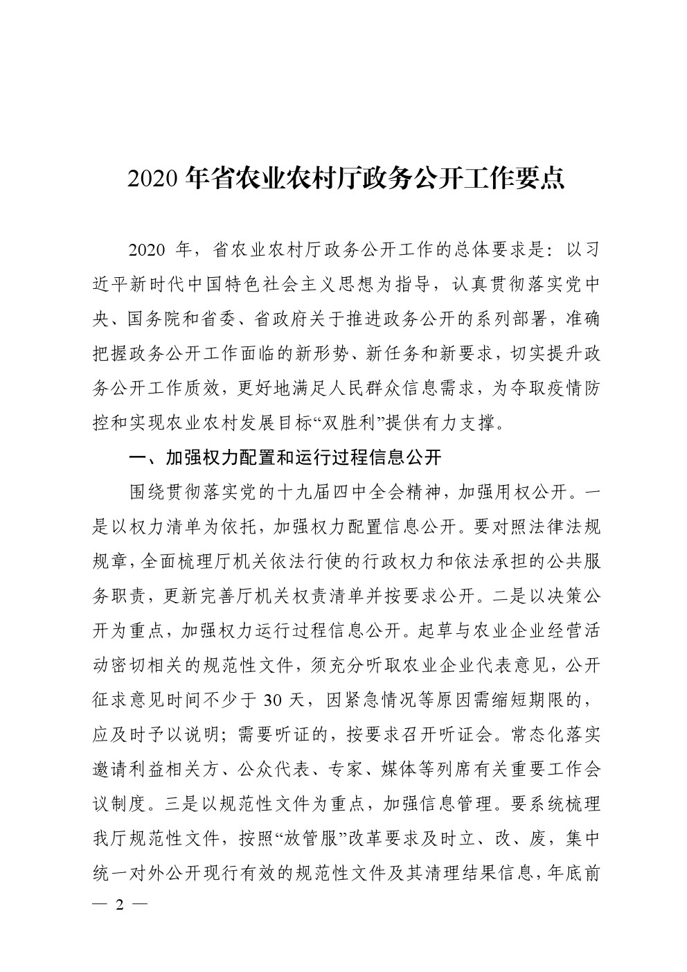 省农业农村厅办公室 关于印发 2020 年省农业农村厅政务公开 工作要点的通知