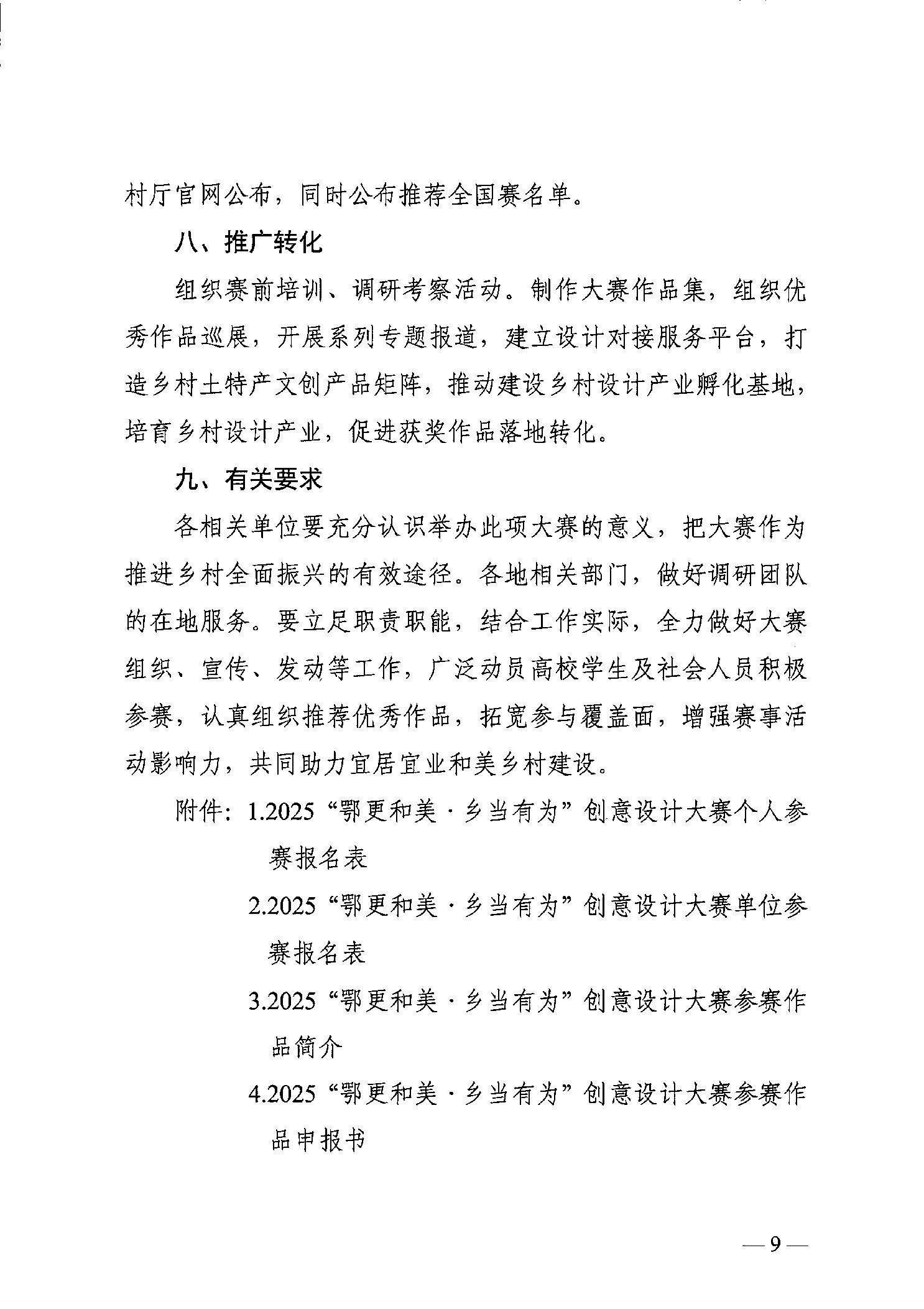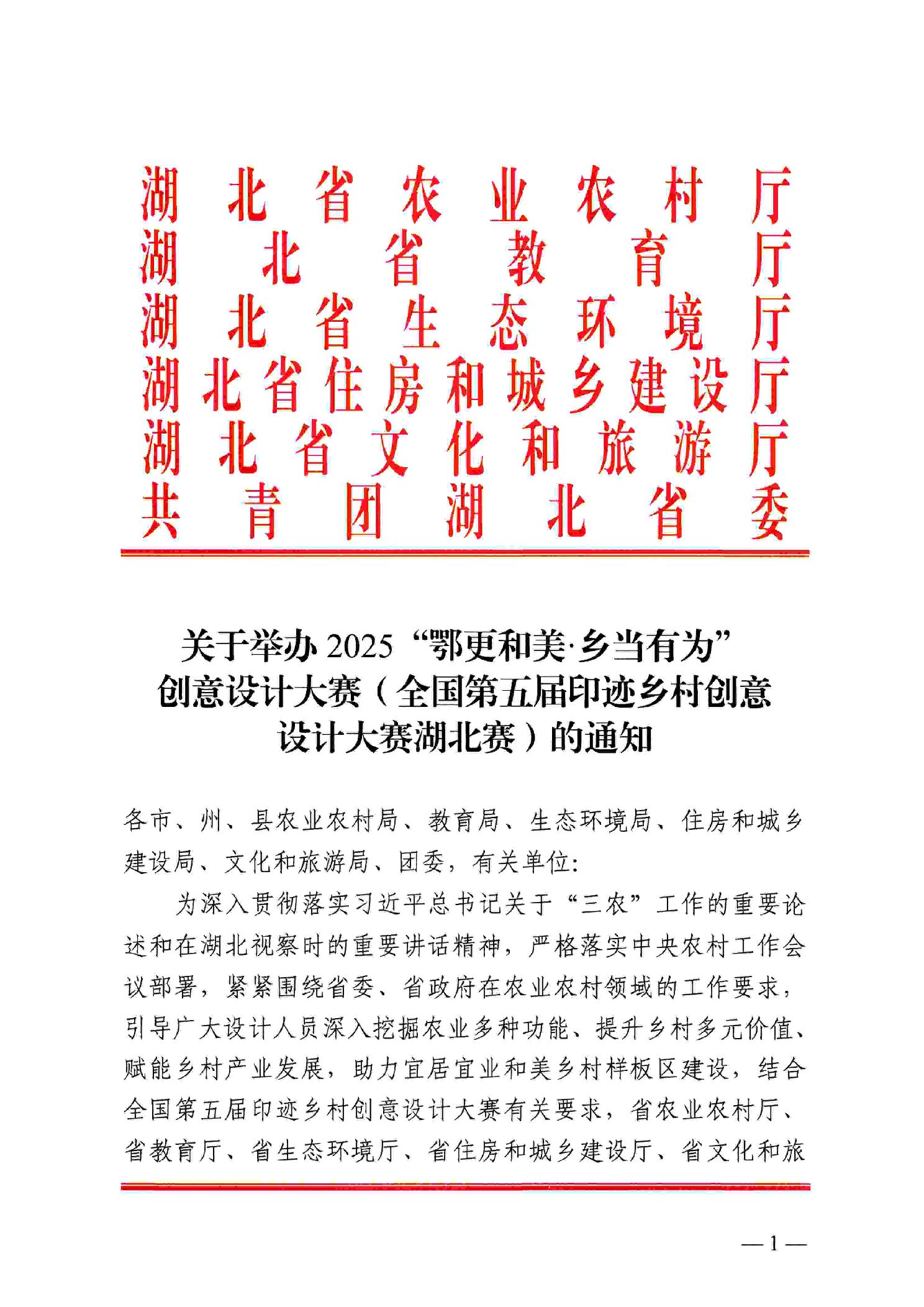 关于举办2025“鄂更和美·乡当有为” 创意设计大赛(全国第五届印迹乡村创意 设计大赛湖北赛)的通知