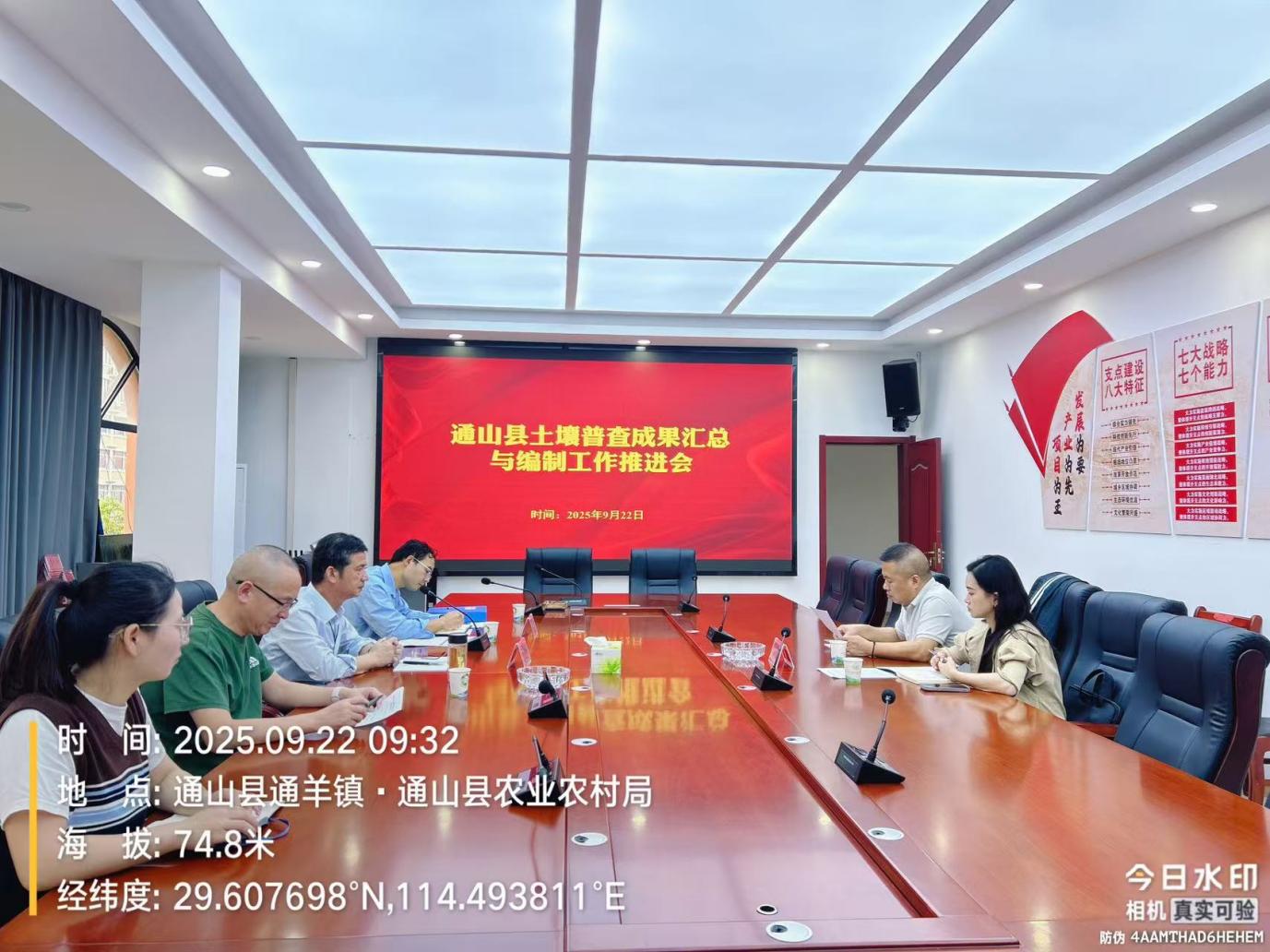 2025年9月22日上午,通山县第三次土壤普查成果汇总与编制工作推进会在县农业农村局召开。县农业农村局分管领导、县第三次土壤普查领导小组办公室成员、湖北省地质局第四地质大队项目负责人及技术骨干等单位代表参会。