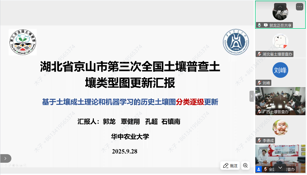 培训会上,华中农业大学郭龙副教授以京山市为例,围绕技术团队组建、技术水平提升、成果质量控制等方面,系统介绍我省在室内分析、野外校核、历史土壤图更新、类型判定到成果图件编制等环节工作成效,为全国土壤分类制图提供了可借鉴的实践路径。